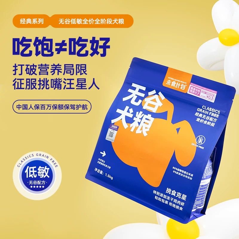 未食计划 全价全期无谷低敏犬粮(含冻干鸡肉碎)1.5kg